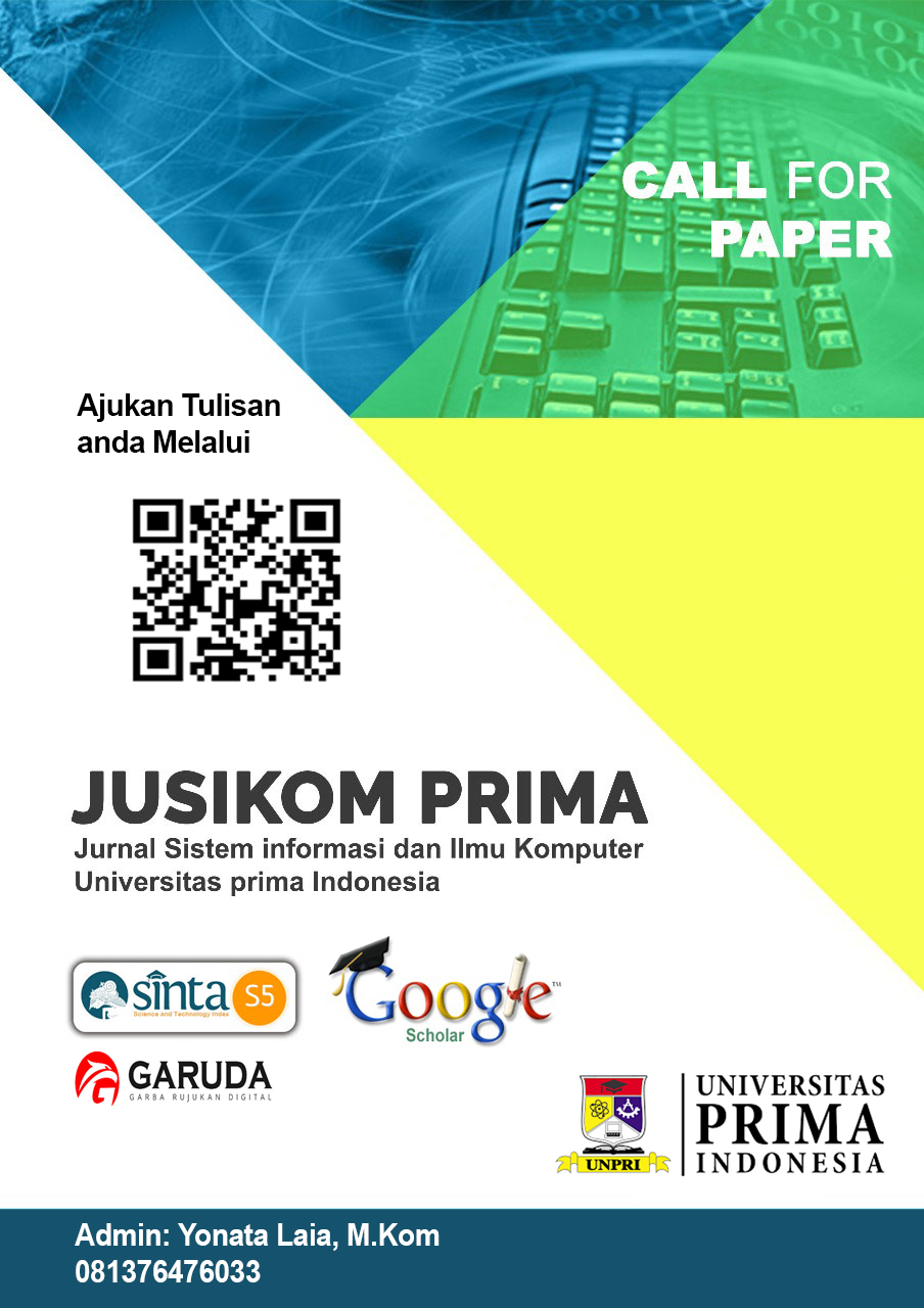 JUSIKOM: Jurnal Sistem Informasi dan Ilmu Komputer is a scientific journal published by the Information Systems Study Program, Faculty of Technology and Computer Science, Universitas Prima Indonesia (UNPRI) Medan. The journal serves as an academic platform for disseminating scholarly works, including qualitative and quantitative research, information system design, analytical studies, and application development. Published biannually in February and August, the journal features contributions across the domains of Informatics Engineering, Computer Science, and Information Systems. Its primary areas of interest include information security, data communication and networking, cloud computing, mobile computing, artificial intelligence, decision support systems, big data analysis, data analytics, data science, data warehousing, systems analysis, data utilization, and other subjects relevant to the field of information technology. E-ISSN: 2580-2879.
